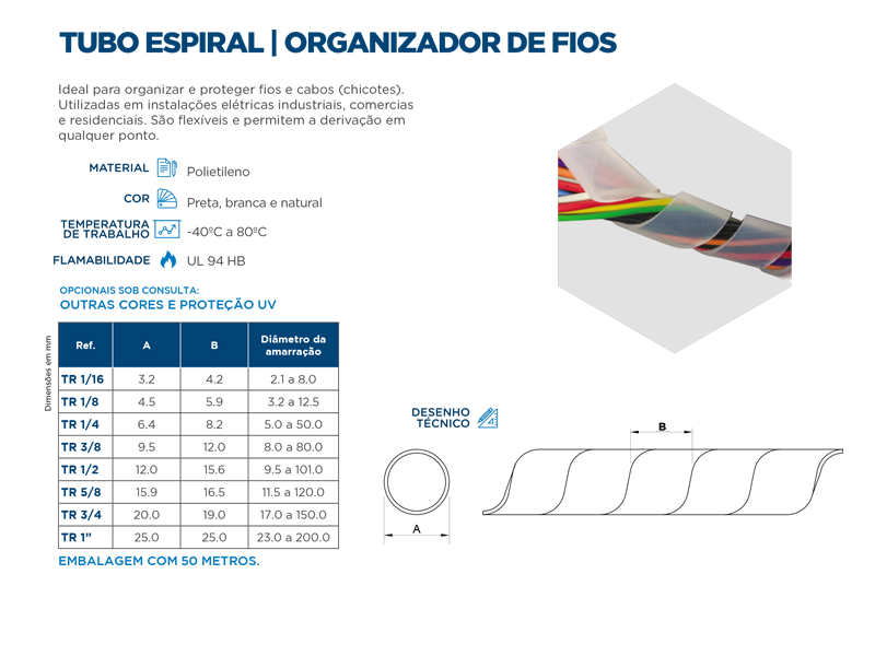 O espiral organizador de fios é uma excelente solução para proteger e organizar fios e cabos elétricos promovendo um local seguro.